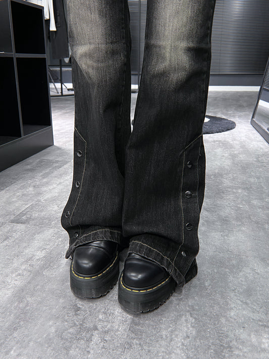 褲腳啪啪鈕微喇叭牛仔褲